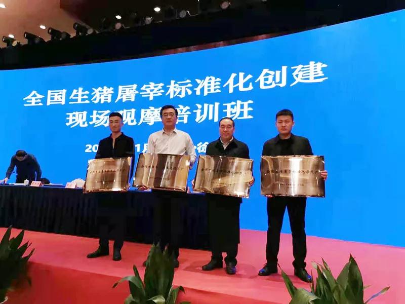 2019年11月22-23日,中国动物疫病预防控制中心(农业农村部屠宰技术中心)在江苏省徐州市举办了全国生猪屠宰标准化创建现场观摩培训班,培训班现场观摩了江苏省徐州市生猪屠宰企业标准化建设和生猪屠宰质量安全监管等工作情况,宣布了第一批生猪屠宰标准化建设示范厂名单并举行授牌仪式。